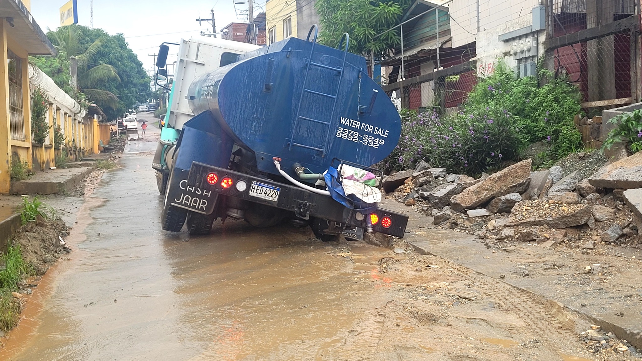 Calle en reparación sin señalización que conduce a Loma Linda, Dustry, Brass Hill provoca incidente a camion sisterna repartidor de agua .