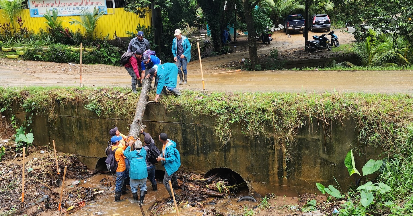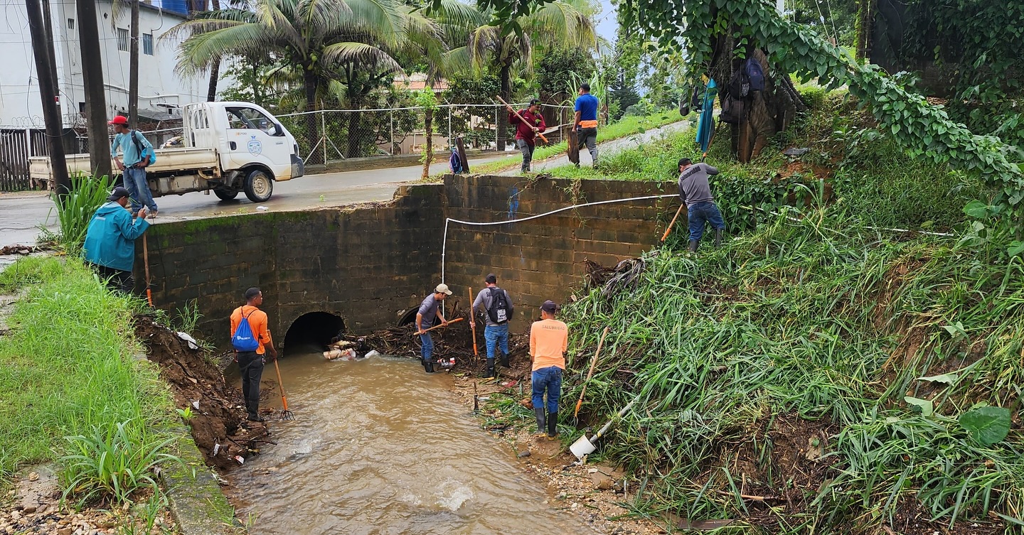Después de un fin de semana lluvioso, nuestros equipos de limpieza comenzaron desde temprano con el mantenimiento de quebradas y tragantes para prevenir cualquier inconveniente.