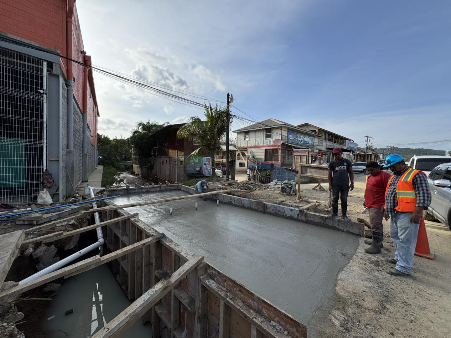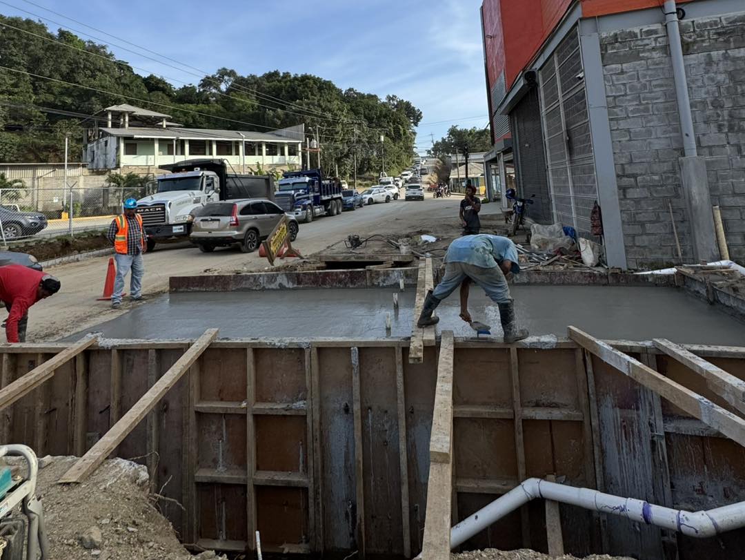 Actualmente, estamos construyendo una de las cajas puente en la calle principal de Coxen Hole, en las cercanías de la entrada a El Suampo. Esta obra es de vital importancia para mitigar y controlar el flujo de aguas provenientes de la zona alta, especialmente ante el crecimiento constante de nuestra isla.