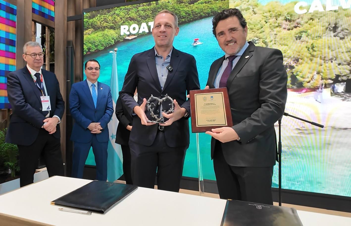 Today, with immense joy and hope, we celebrate the official twinning of Roatán with Calvià, an important step that marks the beginning of a unique collaboration between our island and a leading European tourism municipality . This agreement, signed at the International Tourism Fair (FITUR) by Mayor Ron McNab and Mayor Juan Antonio Amengual, opens the door to growth opportunities in tourism, culture, education, and sustainability, always prioritizing the well-being and future of our people.