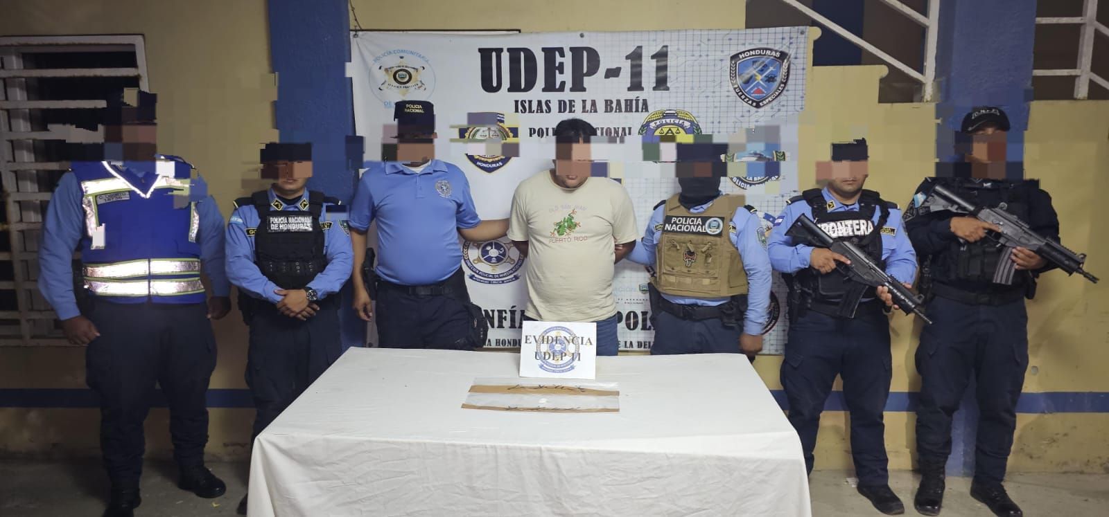 Por el delito de trafico ilicito de droga, un sujeto es arrestado por policías de la UDEP-11, él tiene la edad de 39 años, residente de barrio Sprint Garden, del Municipio de Roatán Islas de la Bahía, al momento de ser requerido por los uniformados, se le encontró 2 bolsitas trasparente conteniendo en su interior supuesta cocaina, la detención fue mediante patrullajes en el sector antes mencionado.