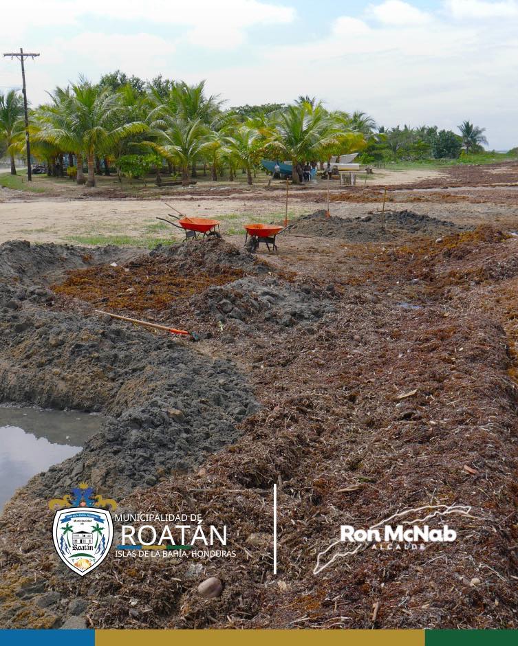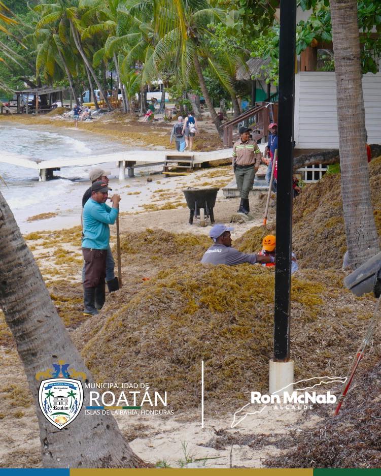 Alcaldia de Roatan retira zargazo de las playa de West End